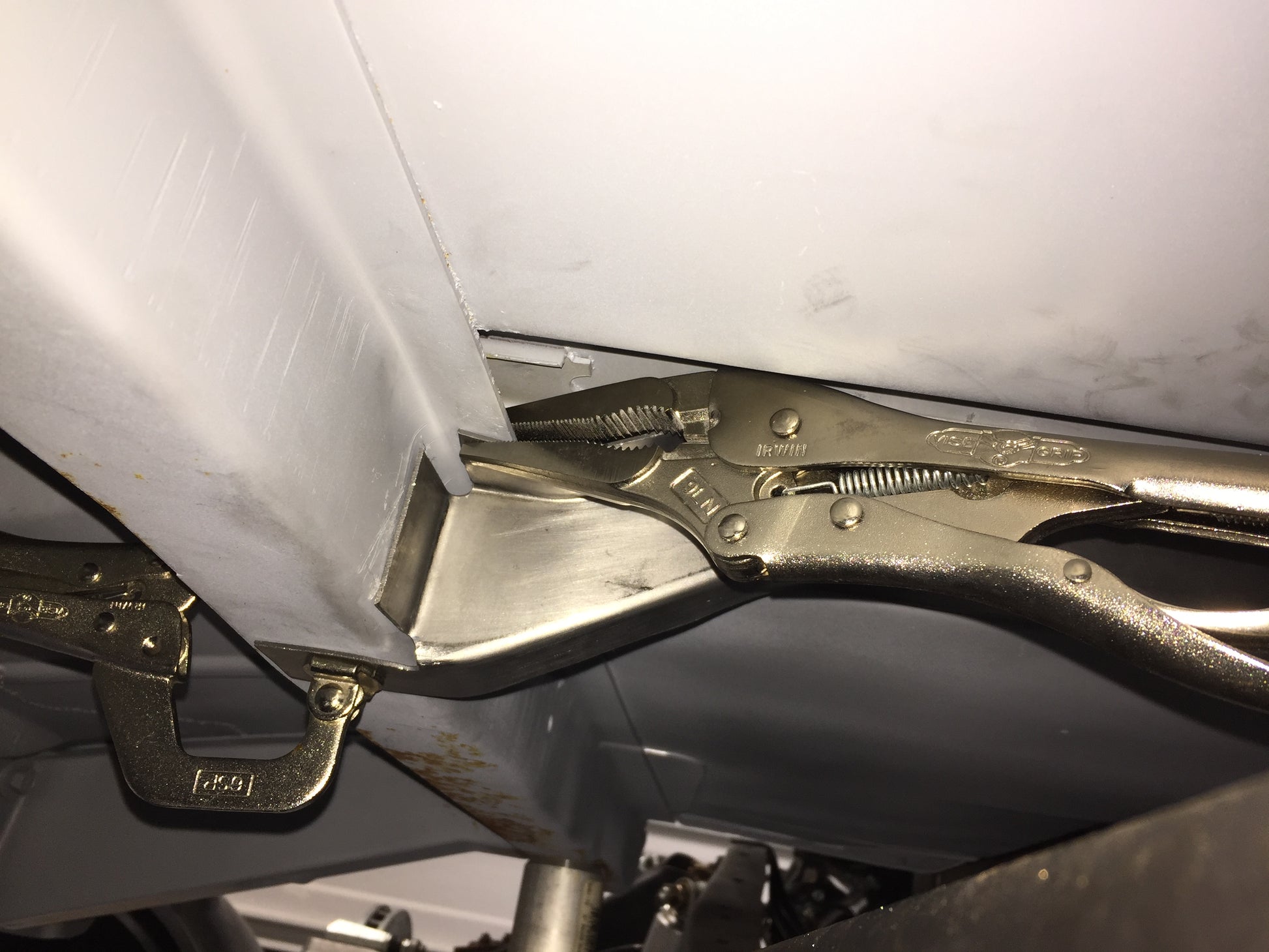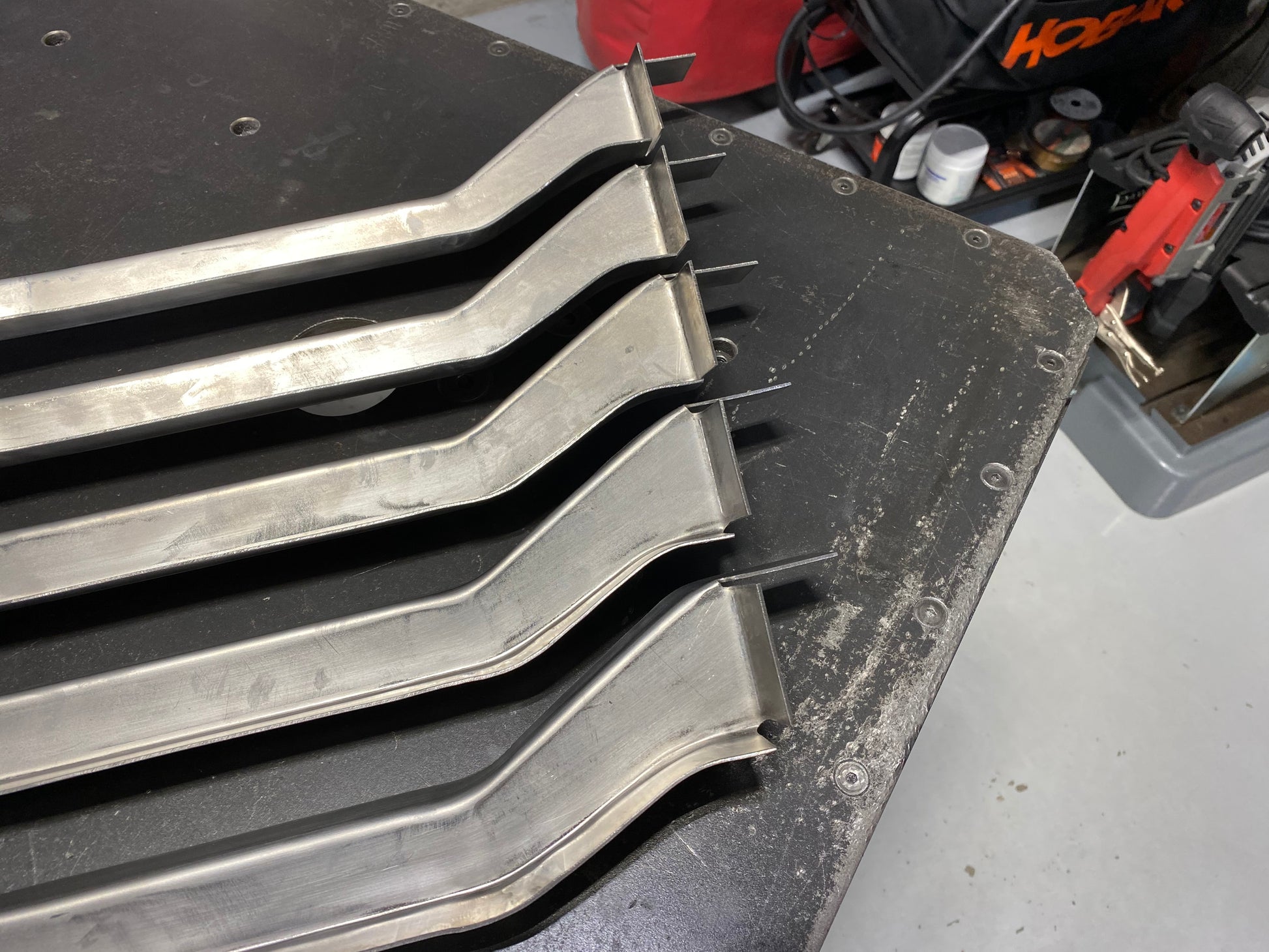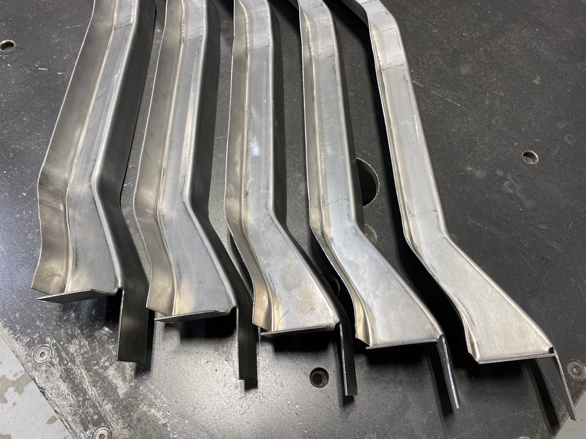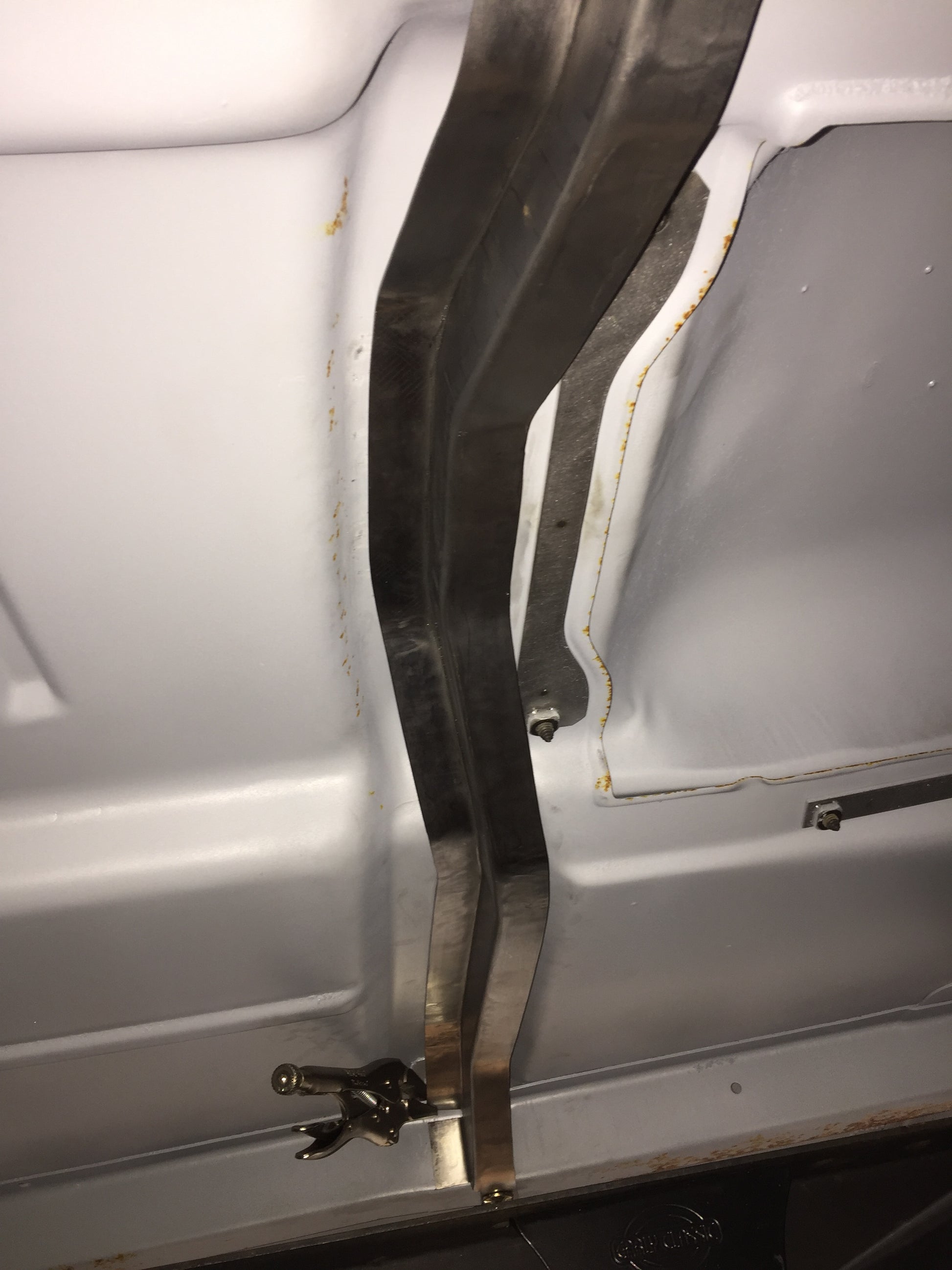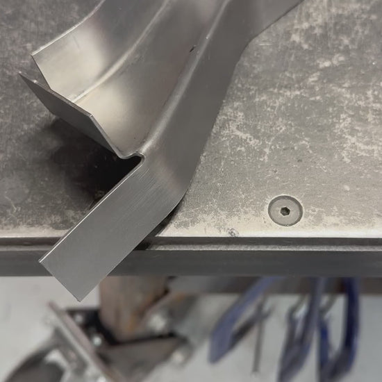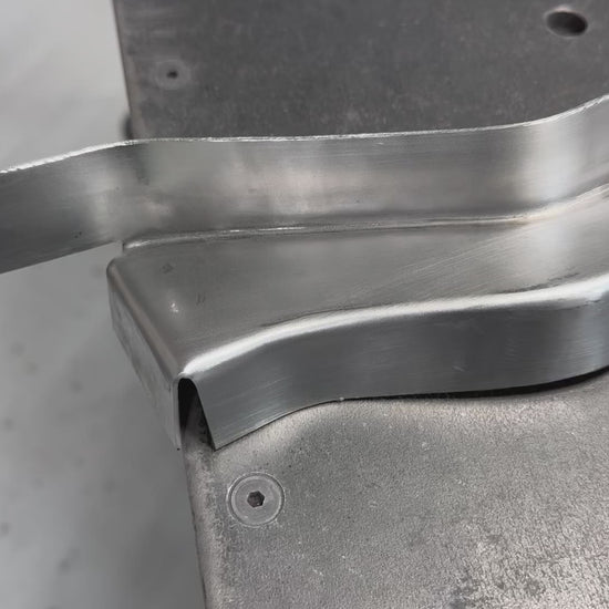 I have been working on reproducing the hard to find 69-72 cab floor bucket seat brace for my own project vehicle. I liked the idea of working with new metal and have enjoyed the metal working challenge. I’m making a few of these available for sale to help others out on their projects. The brace runs under the front of the cab and was factory installed on bucket seat trucks and Blazers to increase the stiffness of the cab at the bucket seat mounting locations. Bench seat trucks do not have this extra structural brace. These parts are made from a flat piece of 16 gauge cold rolled steel and are the same thickness as the original GM brace. A comparison to an original GM brace is shown in the photos (it's the one with light surface rust). They are hand formed, not stamped so they take quite a bit of time to fabricate. Each brace is made in Columbus, Indiana. I will be making these in small batches as time allows. The cab brace is not drilled for weld nuts so that you can drill the holes in the exact spot for your truck. This accounts for any truck to truck variation. I do provide 9 weld nuts total. 5 weld nuts are used for the front seat mounting and I also provide 4 for the console mounting if you would rather use weld nuts instead of sheet metal screws like GM used. I also provide 7 stainless steel pan head screws to fill in the bench seat mounting holes; the same as GM did on the factory installation. The images show comparisons back to an original GM brace. The brace is supplied in a raw finish with a light rust preventative coating. It needs to be rosette welded to the bottom of the cab floor.