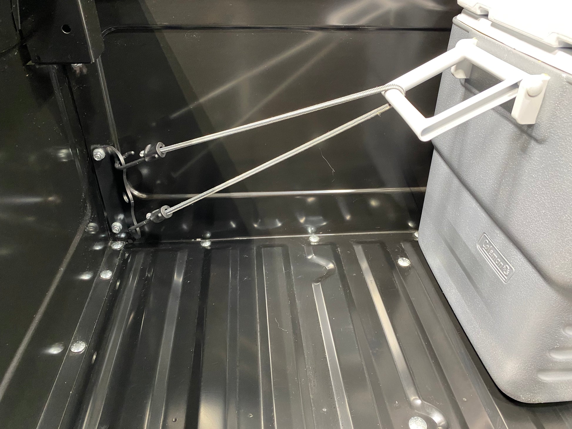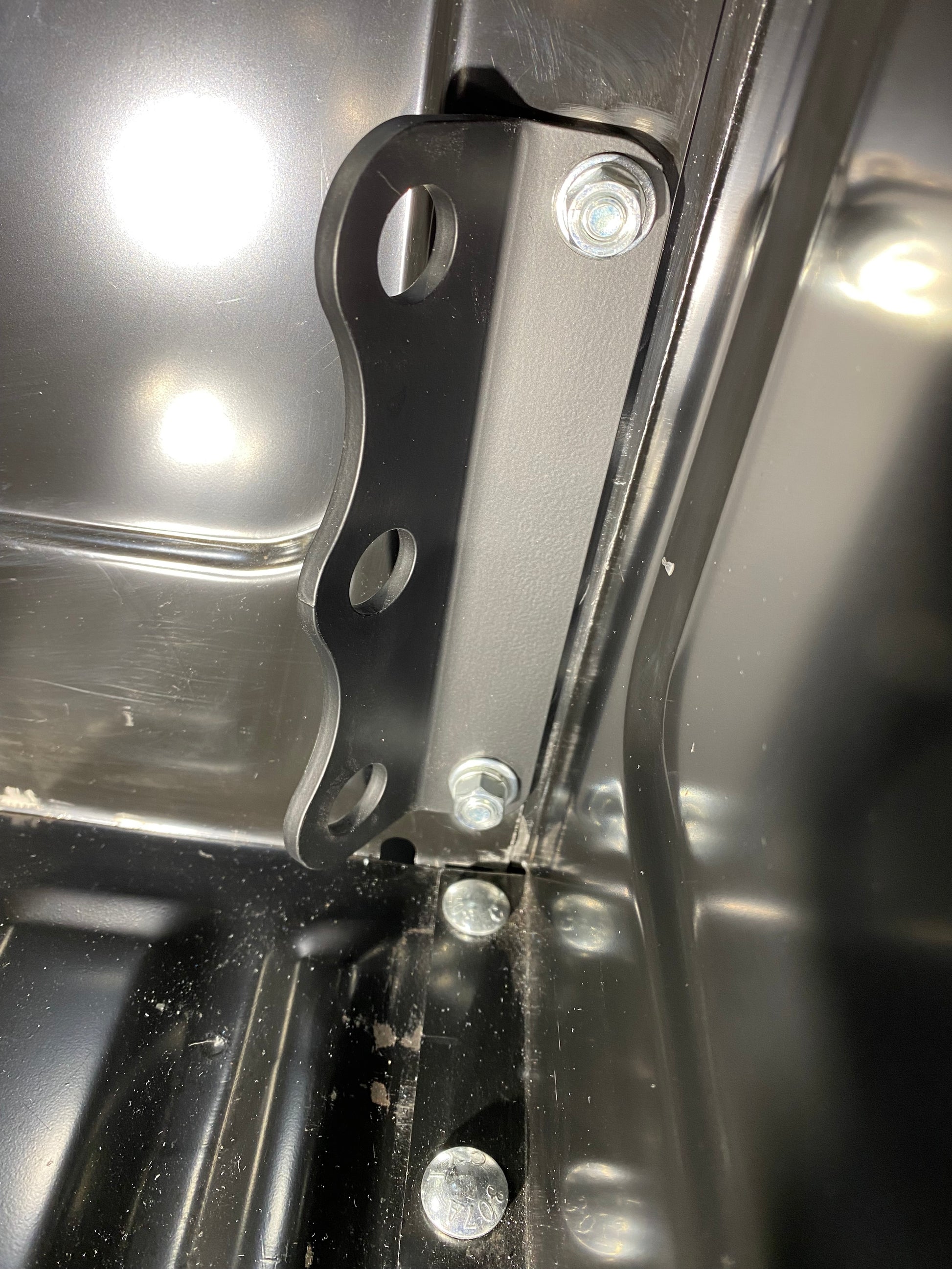 This is a custom front bed cargo tie down bracket that utilizes two of the existing bed fasteners as shown. There is no cutting or drilling required. Simply remove the nuts and washers on your existing bed fasteners (must be at least 7/8 of an inch long) and install these brackets. This location on the bed is made up of 3 layers of sheet metal thickness. The bracket itself is 3/16 inch thick steel with three 3/4 inch holes that is powder coated matte black. The bracket is a clean and simple logo-less design. Bolts are not included. This listing includes TWO brackets as shown in the images. This listing is for a fleet side truck, checkout my other listing if you have a step side. This product is made in the USA.